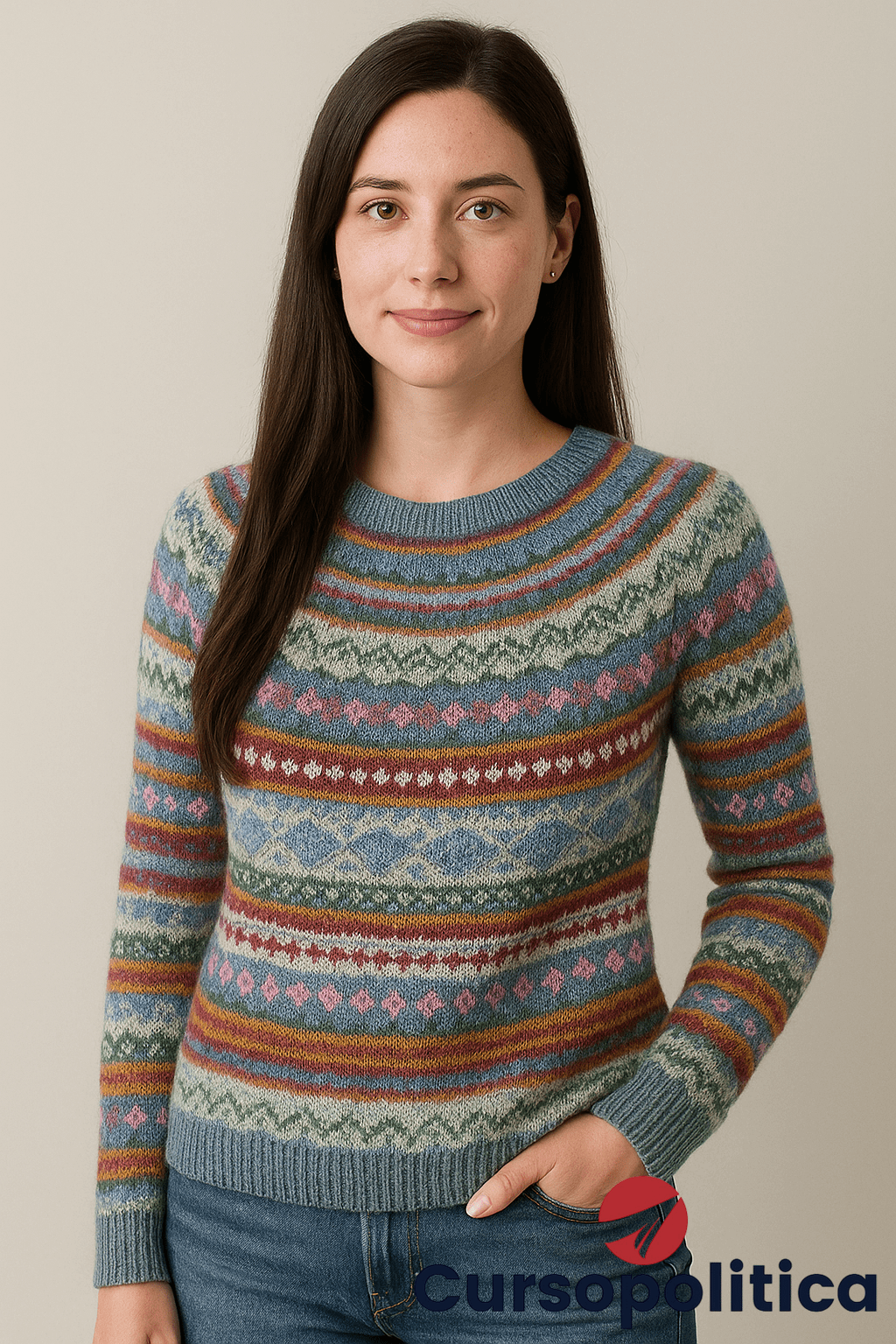 - Style keywords: Women’s sweater, cosy knitwear, colourful jumper, autumn/winter fashion