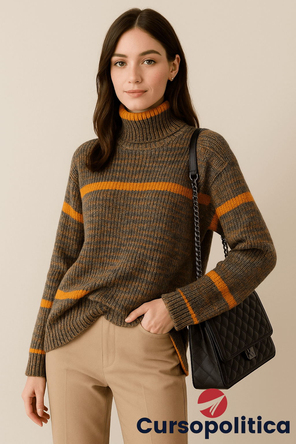 Wrap yourself in the soft comfort of this women’s knitted oversized turtleneck jumper. Designed with a relaxed fit and warm brown tones, it’s perfect for cosy days and casual layering throughout the cooler seasons.