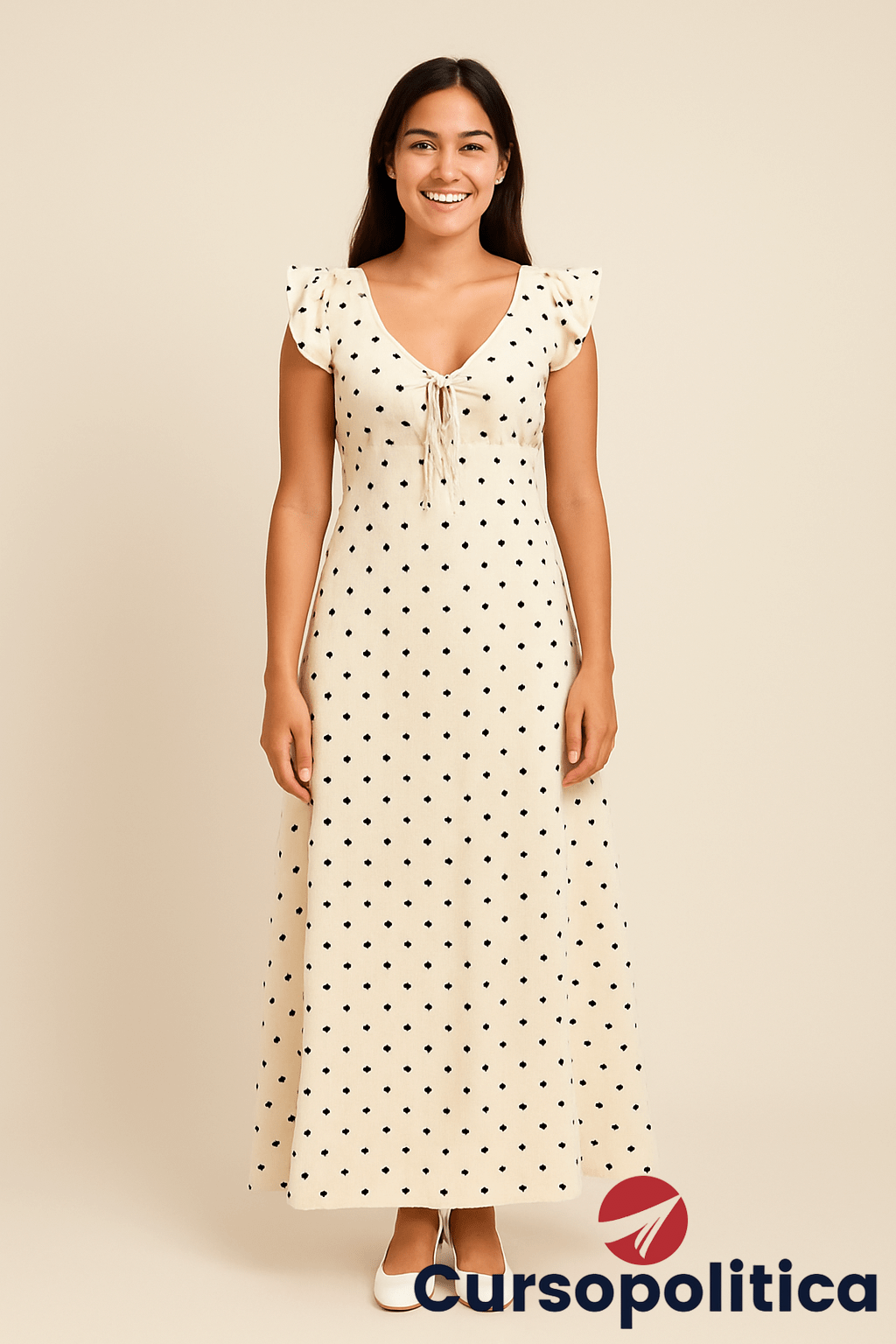 There’s something about this dress that makes me feel like I’ve just stepped out of a Highland dream. The Isla-Rose Maxi floats around me like a summer breeze – soft, light, and full of quiet charm. The way the ruffled sleeves kiss my shoulders and the V-neckline frames my collarbones... it’s subtle, but powerful. I feel elegant, yet playful. The polka dots remind me of vintage summers and laughter in the late afternoon sun. Whether I’m walking barefoot through the grass or clinking glasses on a warm terrace, this dress makes everything feel just right. It’s not about being noticed – it’s about feeling unforgettable.
