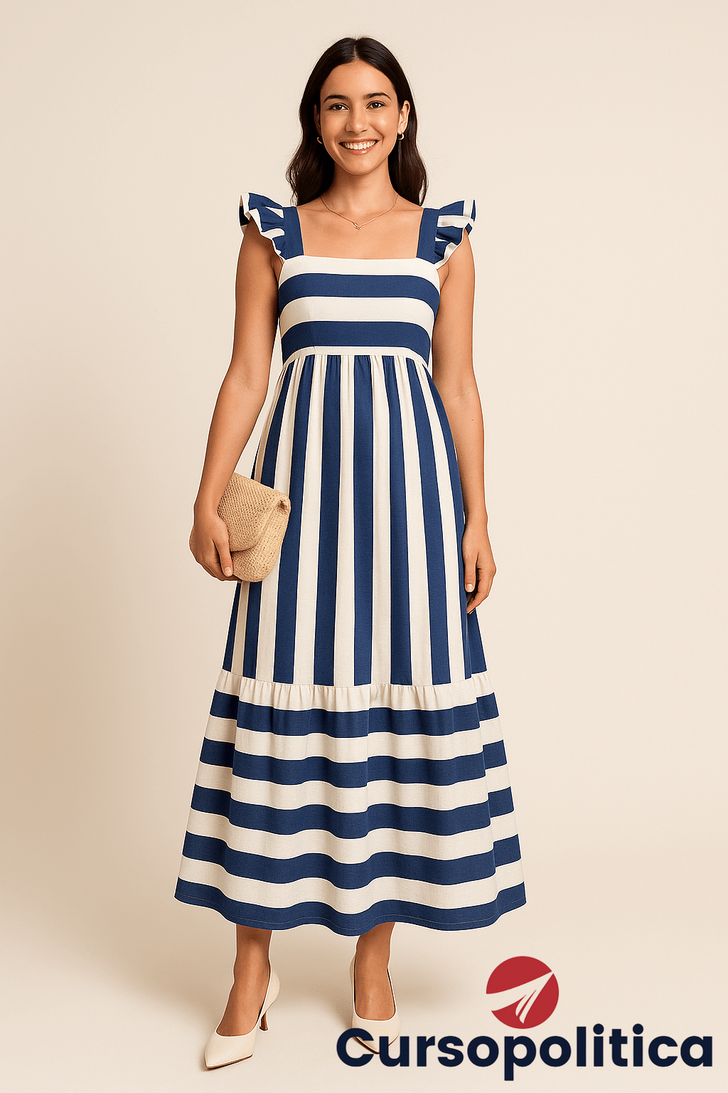 There’s a quiet joy in slipping into the Ailsa dress. It’s the kind of piece that instantly lifts my mood – light, airy, and full of effortless charm. The square neckline frames my shoulders just right, and those soft ruffled straps? They dance as I move, adding a touch of romance to every step. I love how the high waist gives me shape without feeling tight, and the vertical stripes do something magical – they make me feel taller, more poised. Whether I’m wandering through a weekend market, sipping iced coffee in the sun, or just feeling the breeze brush past me, this dress becomes part of that feeling – free, feminine, and quietly confident.